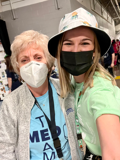 I briefly mentioned earlier about running into familiar faces, and oh let me tell you, even though there weren't a ton, the few that I ran into made me smile from ear to ear. One that I have started to look forward to every year is my girl, Mary Anne. MA is a clinical instructor/professor in the college of nursing and she played such a huge role in shaping me into the nurse I am today. Two years ago, before THON had to make a virtual appearance thanks to darn 'rona, I helped out at the med table where dancers come to take their scheduled daily medications or PRNs/as needed's such as tylenol, ibuprofen, tums, eye drops, etc. Nursing students run the table and get to practice medication administration with the assistance of faculty and alumni (which is where I come in). I felt very official two years ago, being on the flip side of graduation, but felt even more like a celebrity this year when I was chatting with some of the students about being a travel nurse. It was so neat to see them get so excited about their nursing futures, and I truly hope they never lose that.